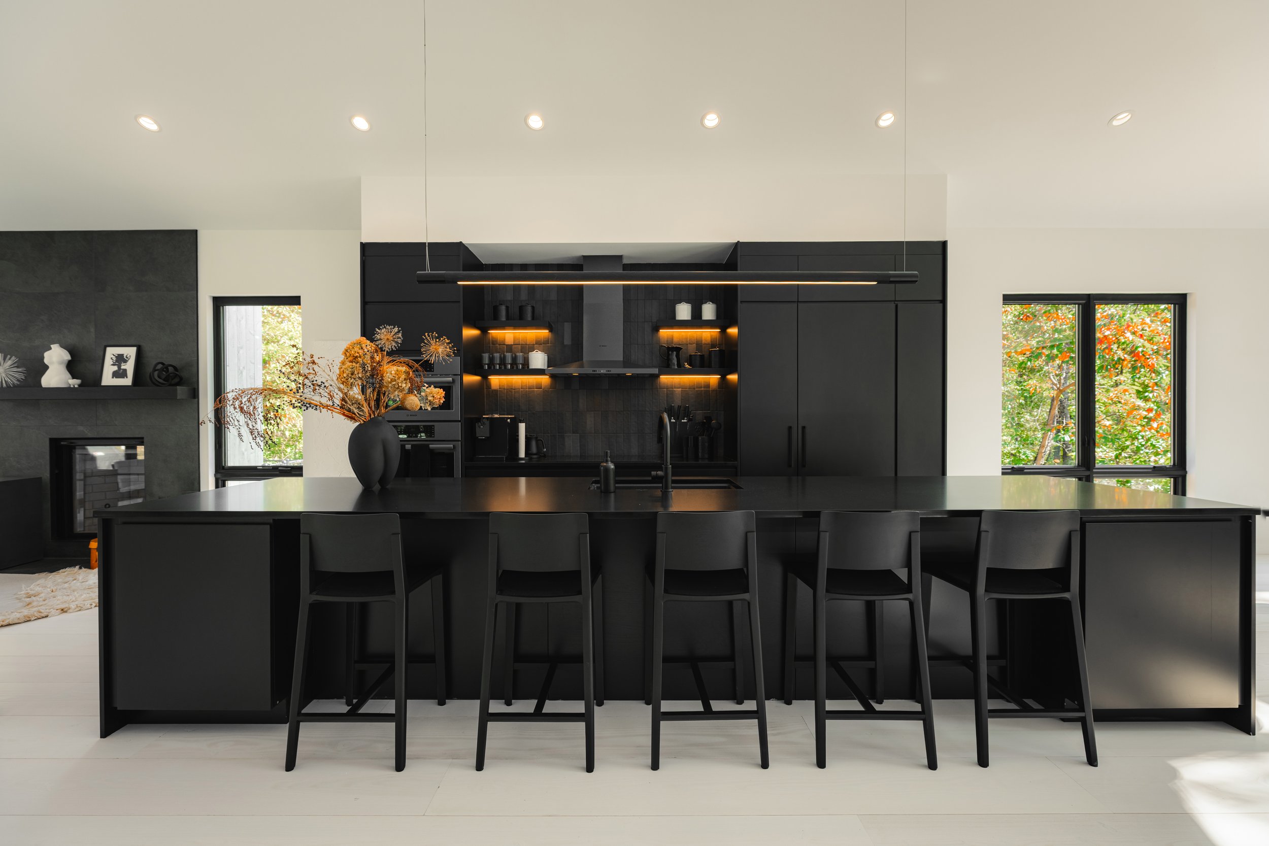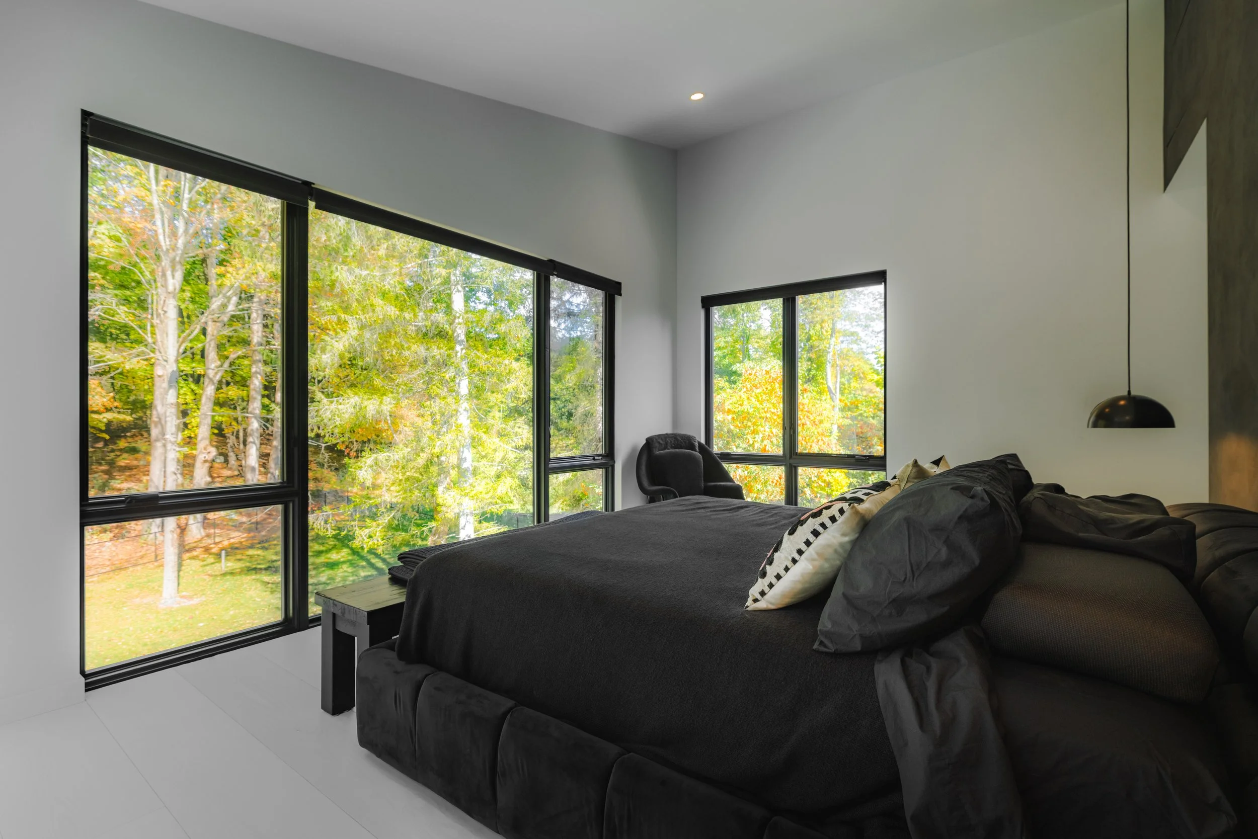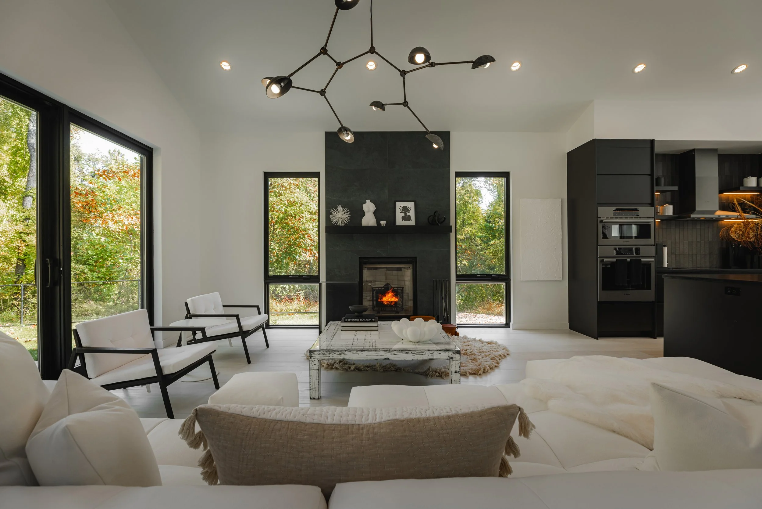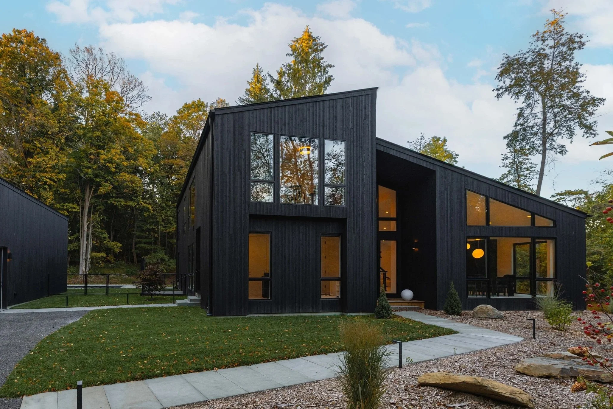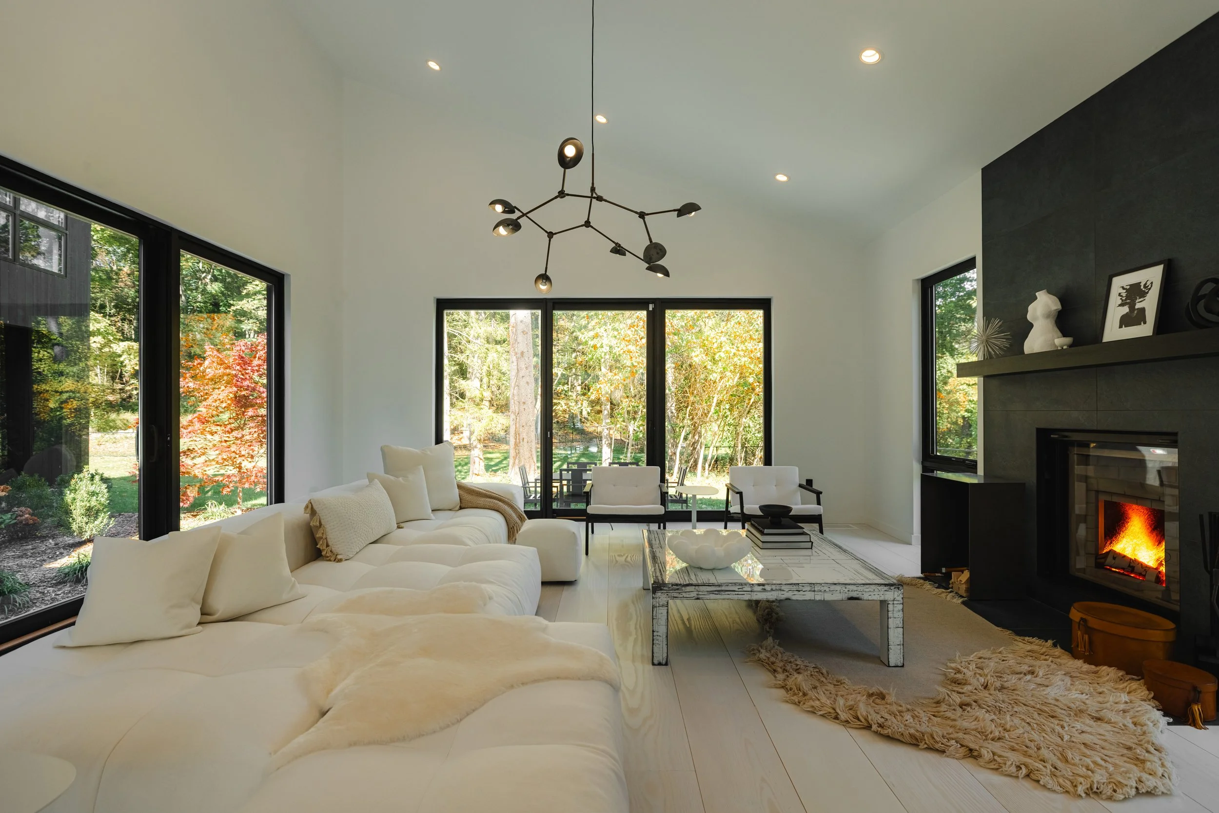 Spruce is sited on 6 private primarily wooded acres accessible from a quiet country road and surrounding bucolic farm landscapes. The property inspires interiors with natural textures and a luxurious modern simplicity.